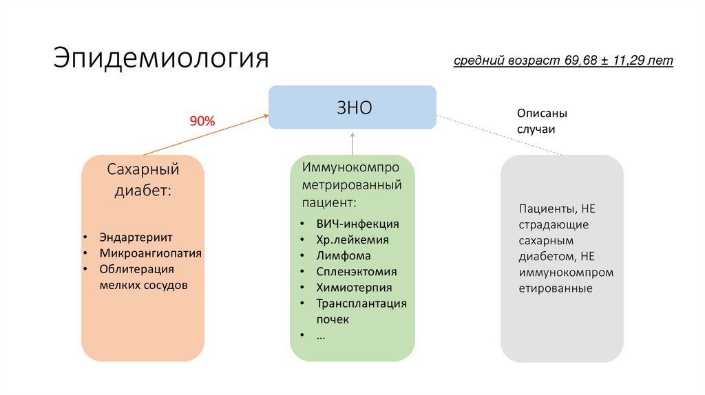 Эпидемиологиясредний возраст 69,68 ± 11,29 лет
