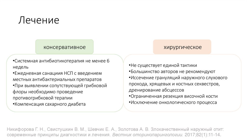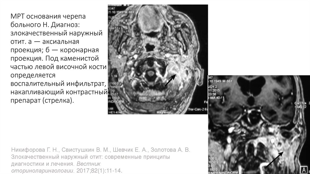 Никифорова Г. Н., Свистушкин В. М., Шевчик Е. А., Золотова А. В. Злокачественный наружный отит: