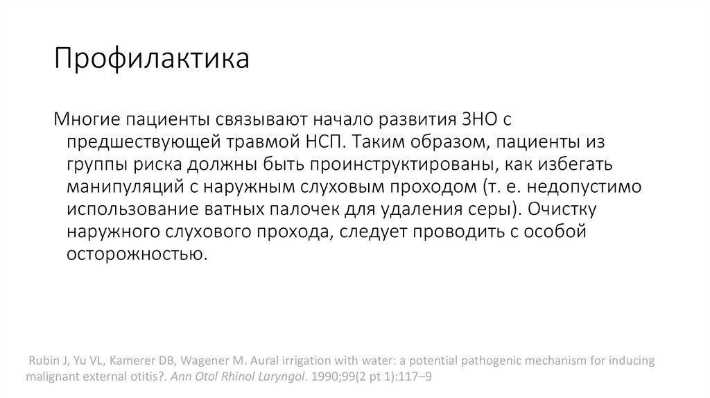 Rubin J, Yu VL, Kamerer DB, Wagener M. Aural irrigation with water: a potential pathogenic mechanism for inducing malignant
