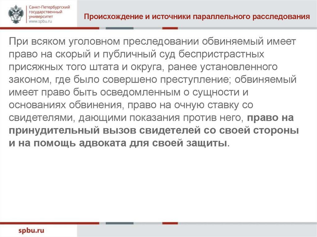 Происхождение и источники параллельного расследованияПри всяком уголовном преследовании обвиняемый имеет