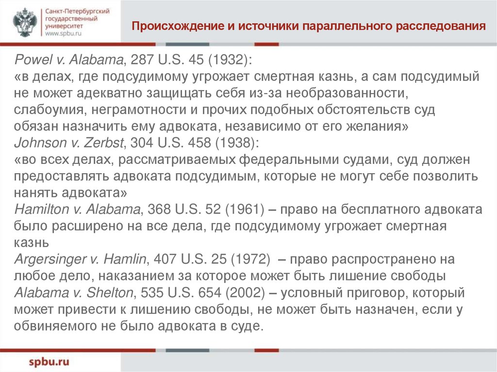 Происхождение и источники параллельного расследованияPowel v. Alabama, 287 U.S. 45 (1932):