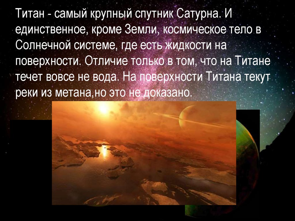 Титан - самый крупный спутник Сатурна. Иединственное, кроме Земли, космическое тело в