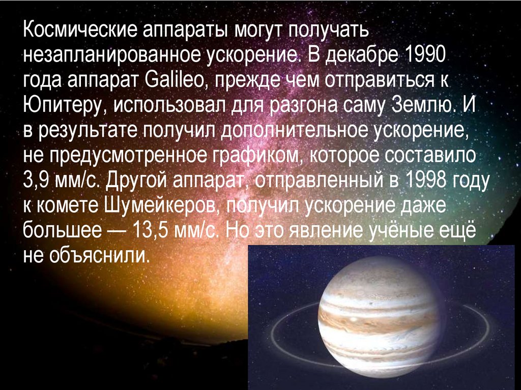 Космические аппараты могут получатьнезапланированное ускорение. В декабре 1990