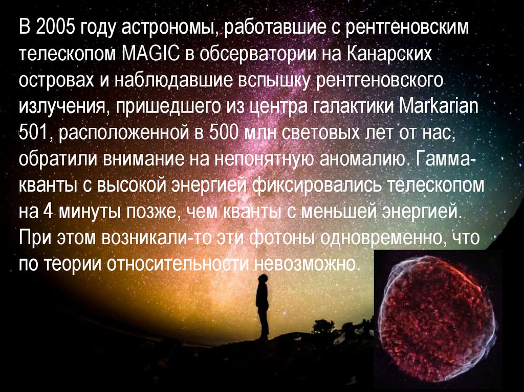 В 2005 году астрономы, работавшие с рентгеновскимтелескопом MAGIC в обсерватории на Канарских