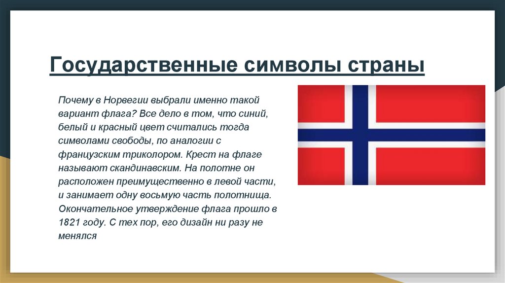 Государственные символы страныПочему в Норвегии выбрали именно такой