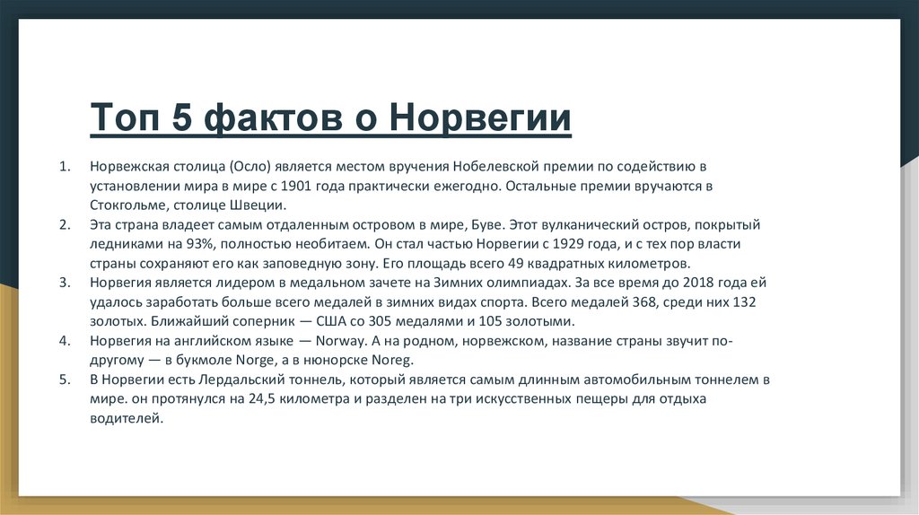 Норвегия на английском языке — Norway. А на родном, норвежском, название страны звучит подругому — в букмоле Norge, а в нюнорске Noreg.