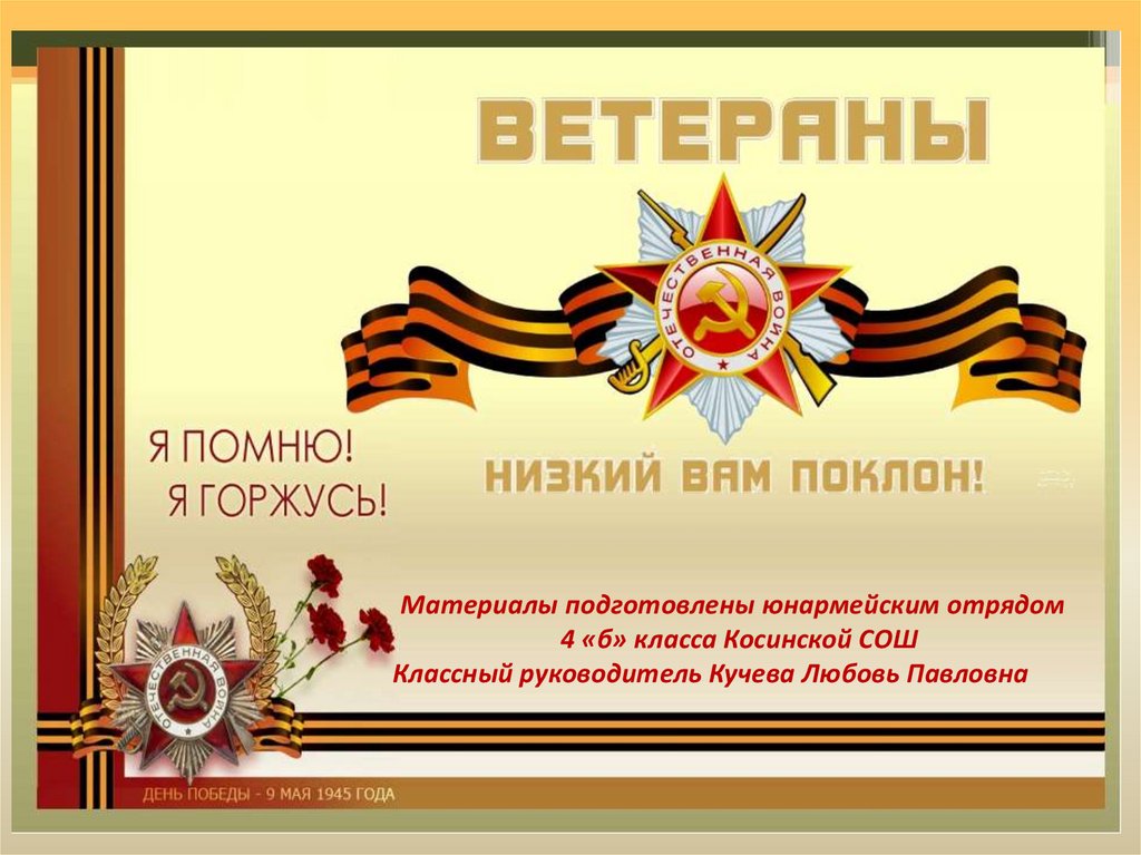 Я помню, я горжусь. Материалы подготовлены юнармейским отрядом Косинской СОШ