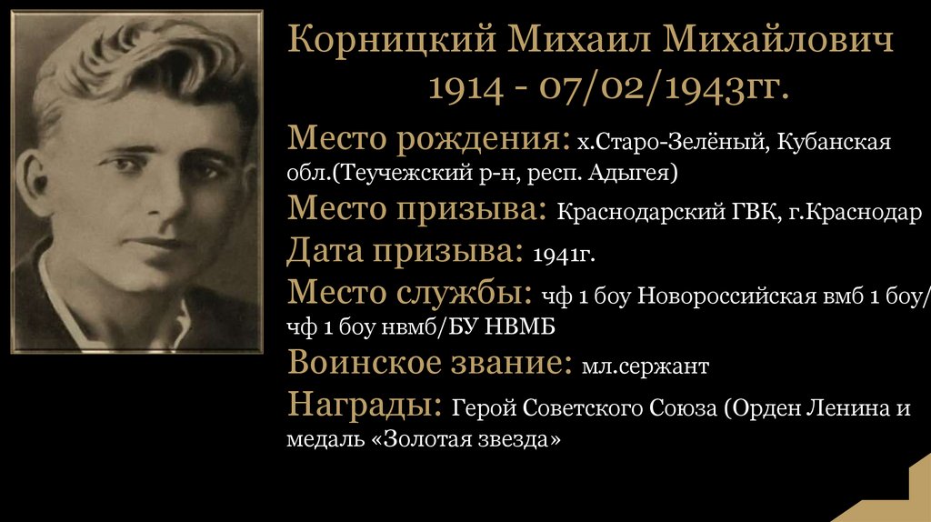 Корницкий Михаил Михайлович1914 - 07/02/1943гг.