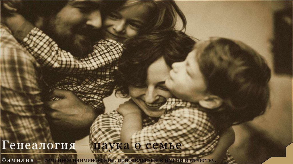 Генеалогия – наука о семьеФ а м и л и я – семейное наименование, прибавляемое к имени и отчеству.