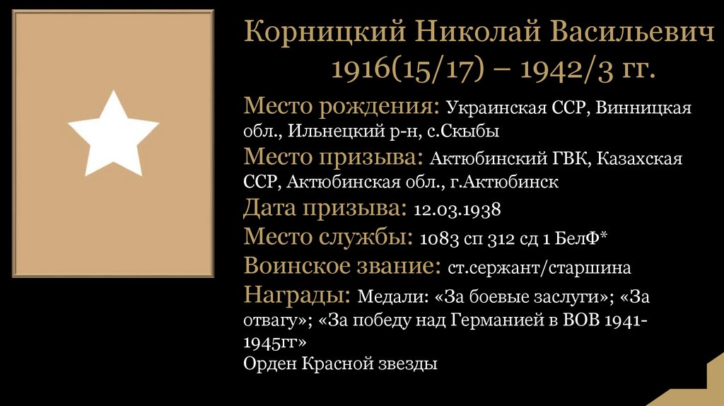 Корницкий Николай Васильевич1916(15/17) – 1942/3 гг.