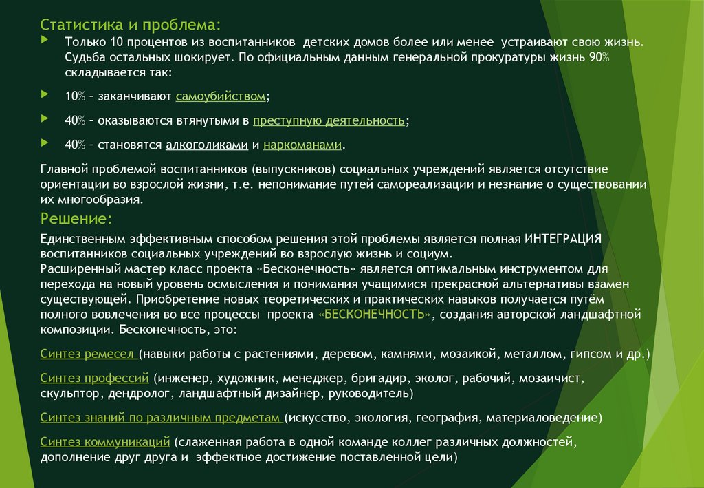 Бесконечность. Социальный проект по интеграции воспитанников социальных учреждений во взрослую жизнь и социум
