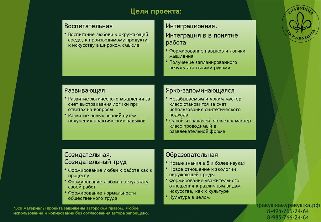 Цели проекта:Воспитательная