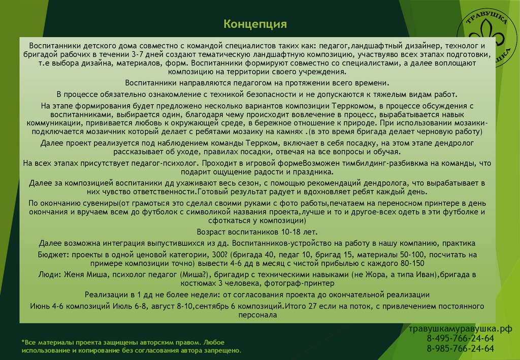полного вовлечения во все процессы проекта «БЕСКОНЕЧНОСТЬ», создания авторской ландшафтной