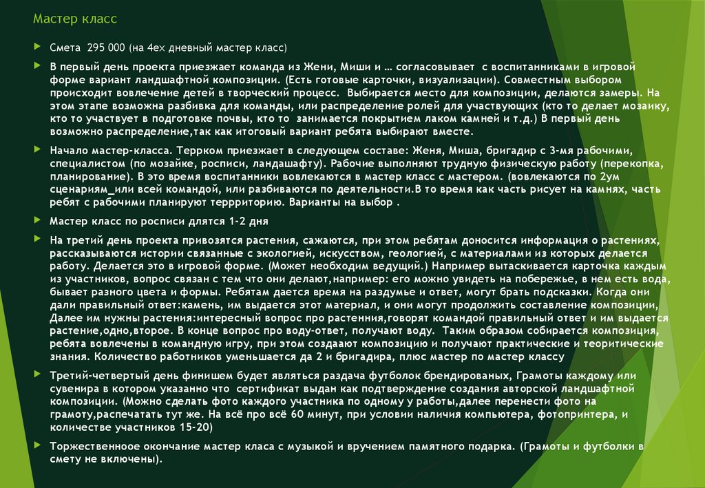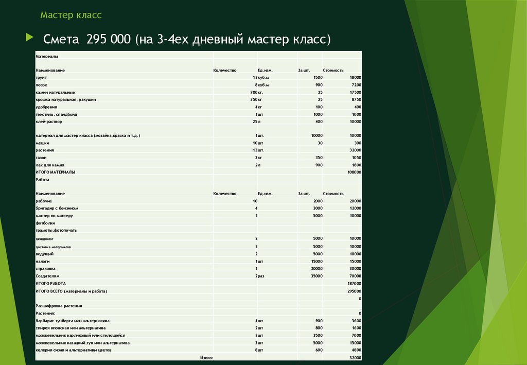 Мастер классСмета 295 000 (на 4ех дневный мастер класс)