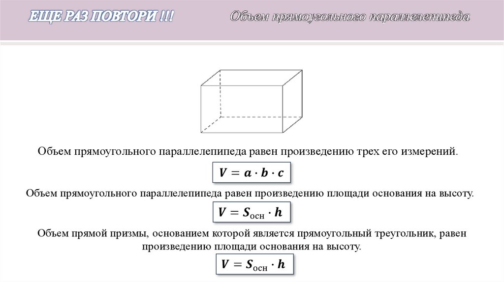 Объем прямоугольного параллелепипеда
