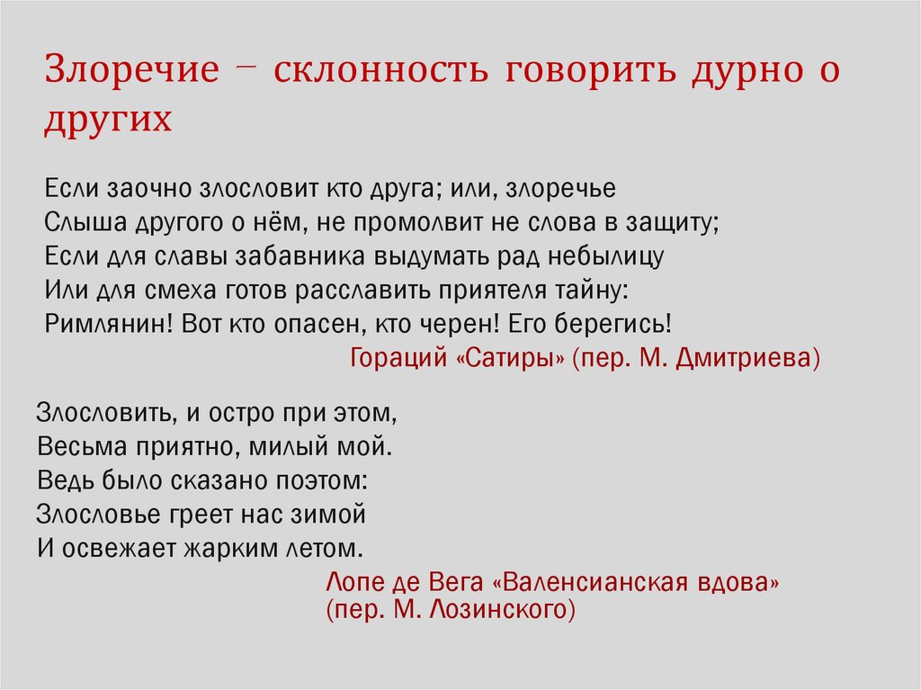 Злоречие – склонность говорить дурно одругих