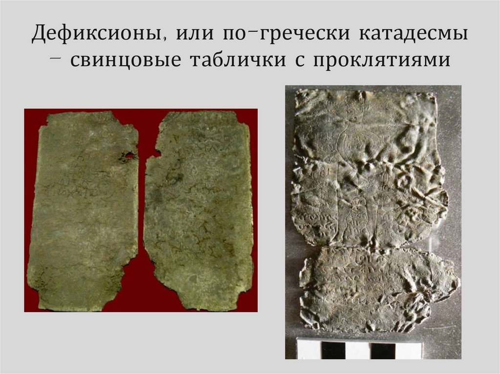 Дефиксионы, или по-гречески катадесмы– свинцовые таблички с проклятиями