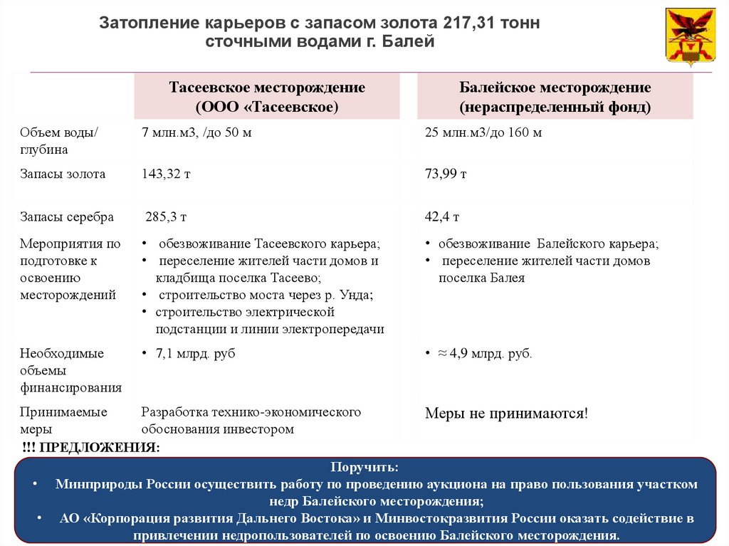привлечении недропользователей по освоению Балейского месторождения.