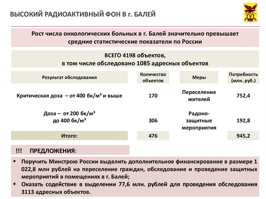 ВЫСОКИЙ РАДИОАКТИВНЫЙ ФОН В г. БАЛЕЙРост числа онкологических больных в г. Балей значительно превышает