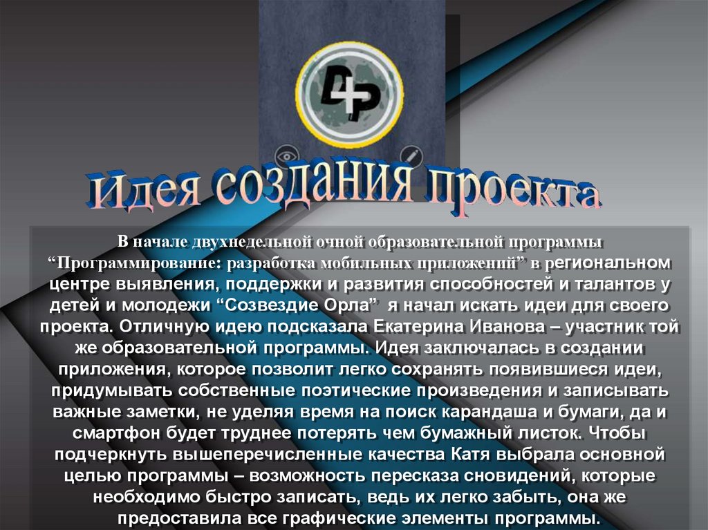 детей и молодежи “Созвездие Орла” я начал искать идеи для своего