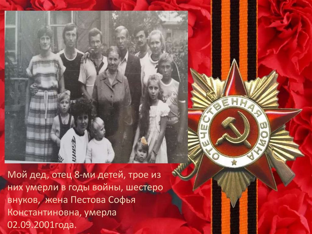 Мой дед, отец 8-ми детей, трое изних умерли в годы войны, шестеро