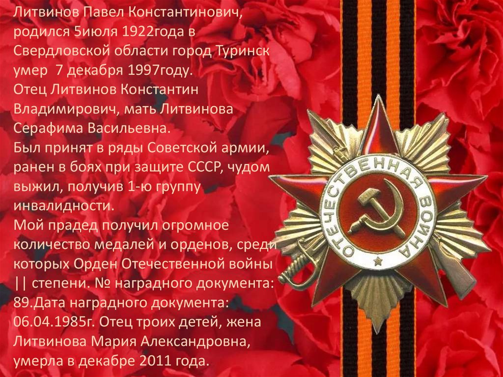 Литвинов Павел Константинович,родился 5июля 1922года в