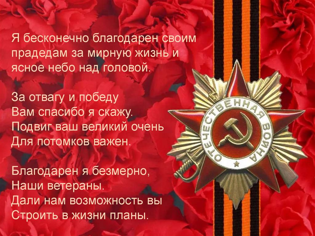 Я бесконечно благодарен своимпрадедам за мирную жизнь и