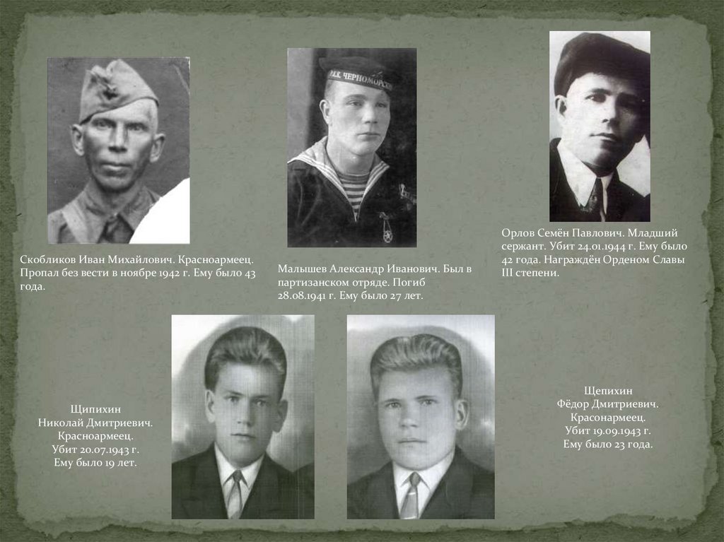 Скобликов Иван Михайлович. Красноармеец.Пропал без вести в ноябре 1942 г. Ему было 43