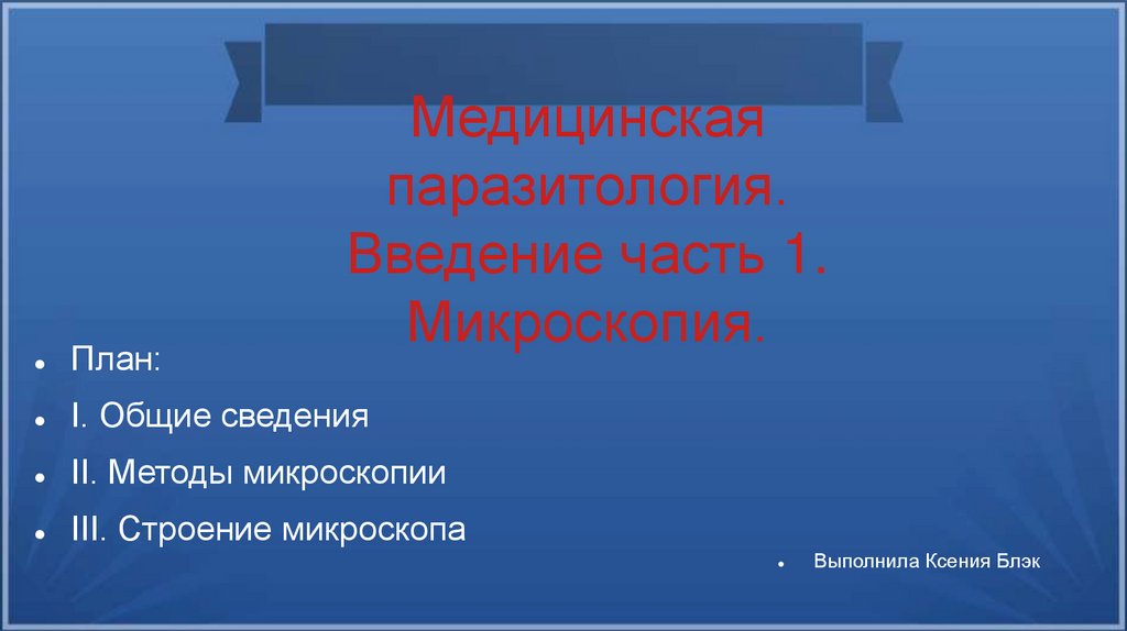 Медицинская паразитология. Введение часть 1. Микроскопия