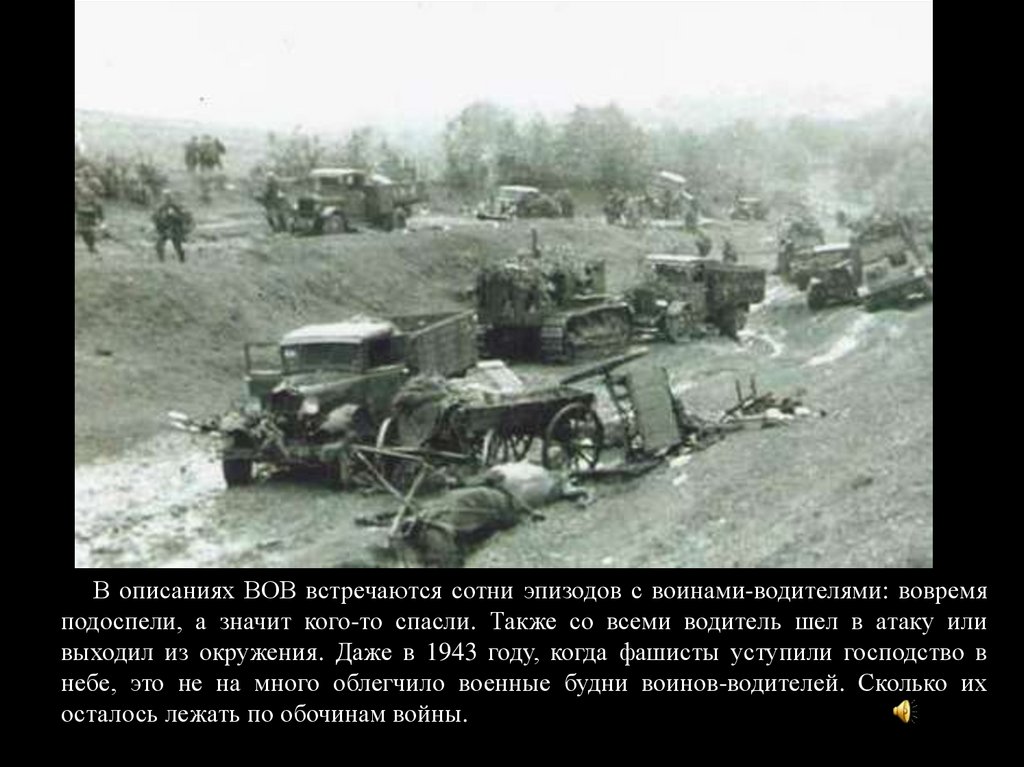 В описаниях ВОВ встречаются сотни эпизодов с воинами-водителями: вовремяподоспели, а значит кого-то спасли. Также со всеми водитель шел в атаку или
