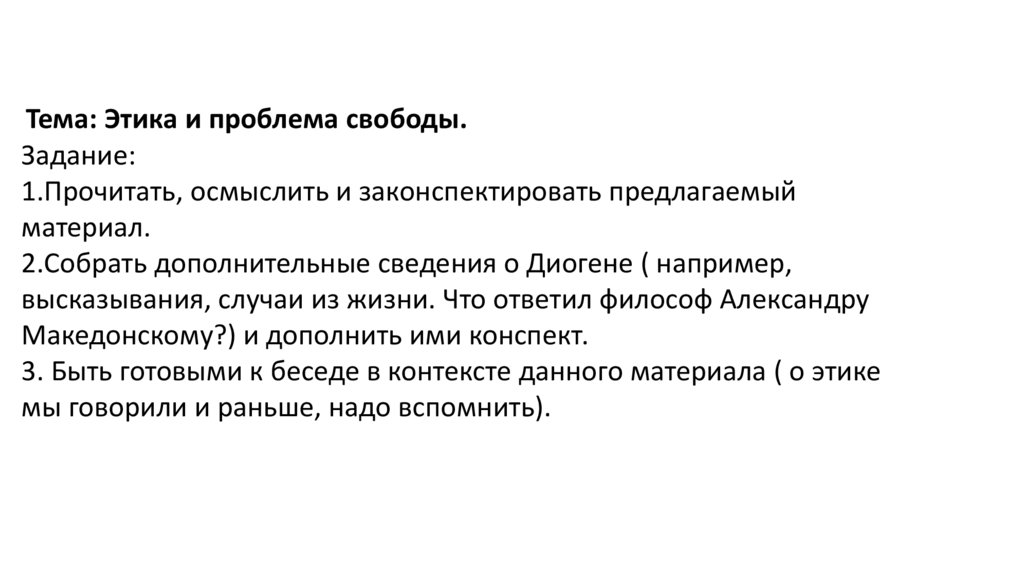 Тема: Этика и проблема свободы.Задание: