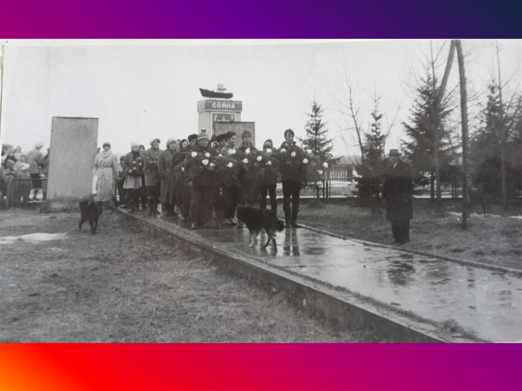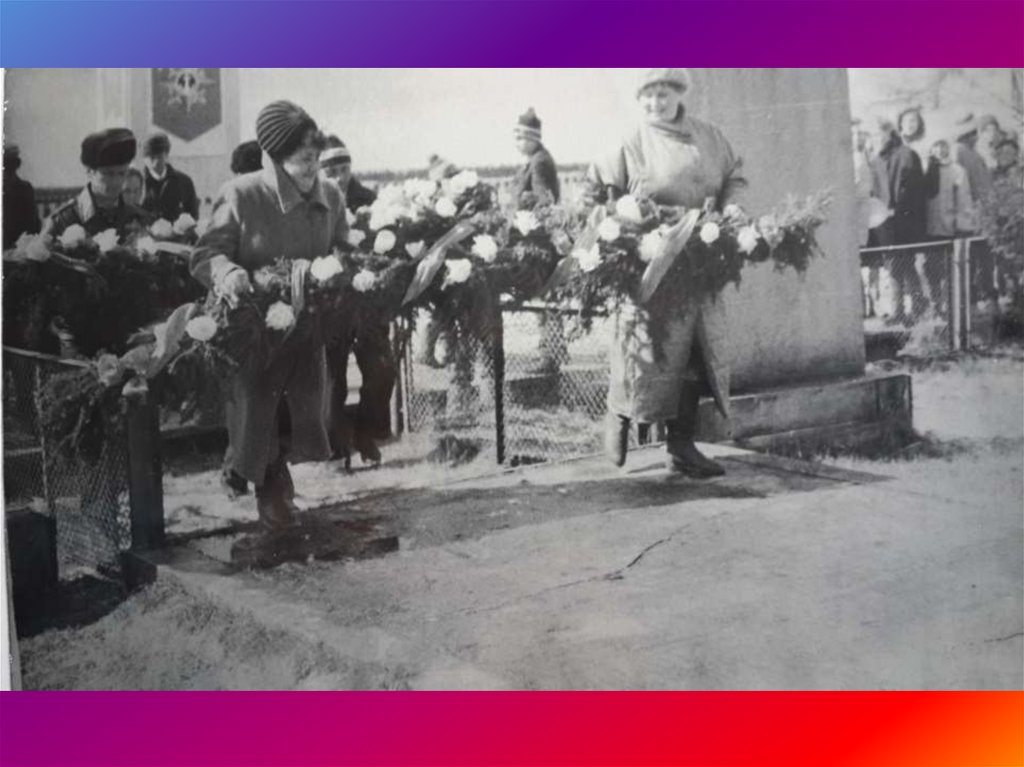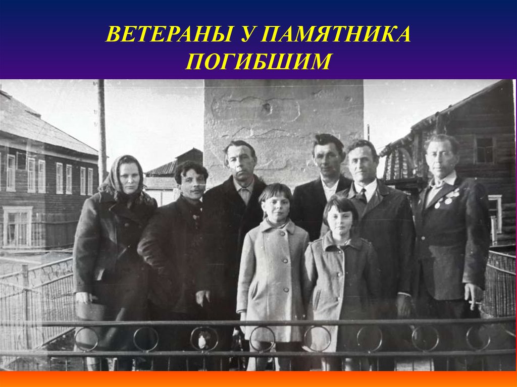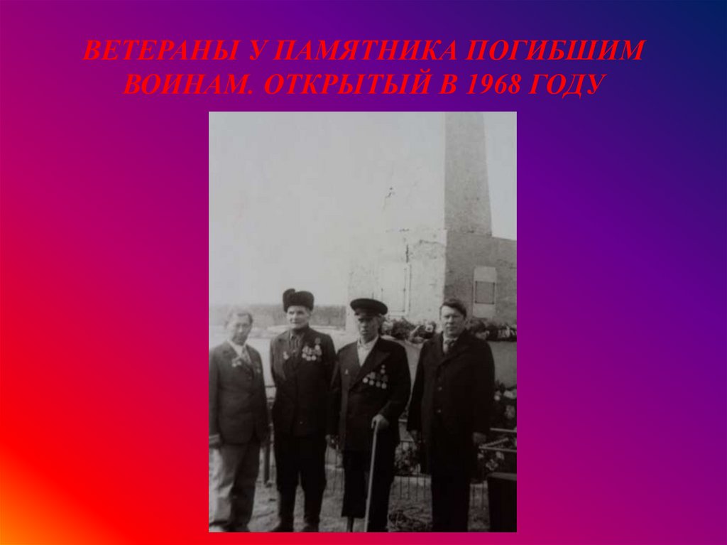 ВЕТЕРАНЫ У ПАМЯТНИКА ПОГИБШИМВОИНАМ. ОТКРЫТЫЙ В 1968 ГОДУ