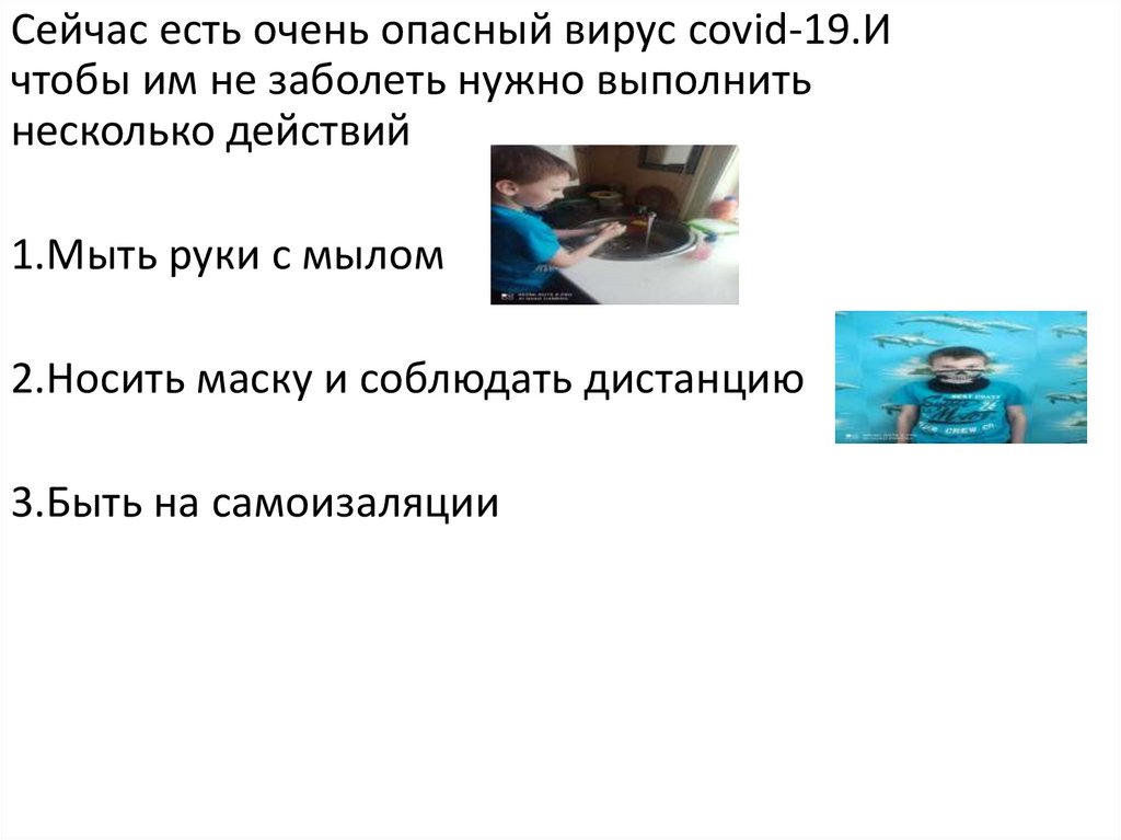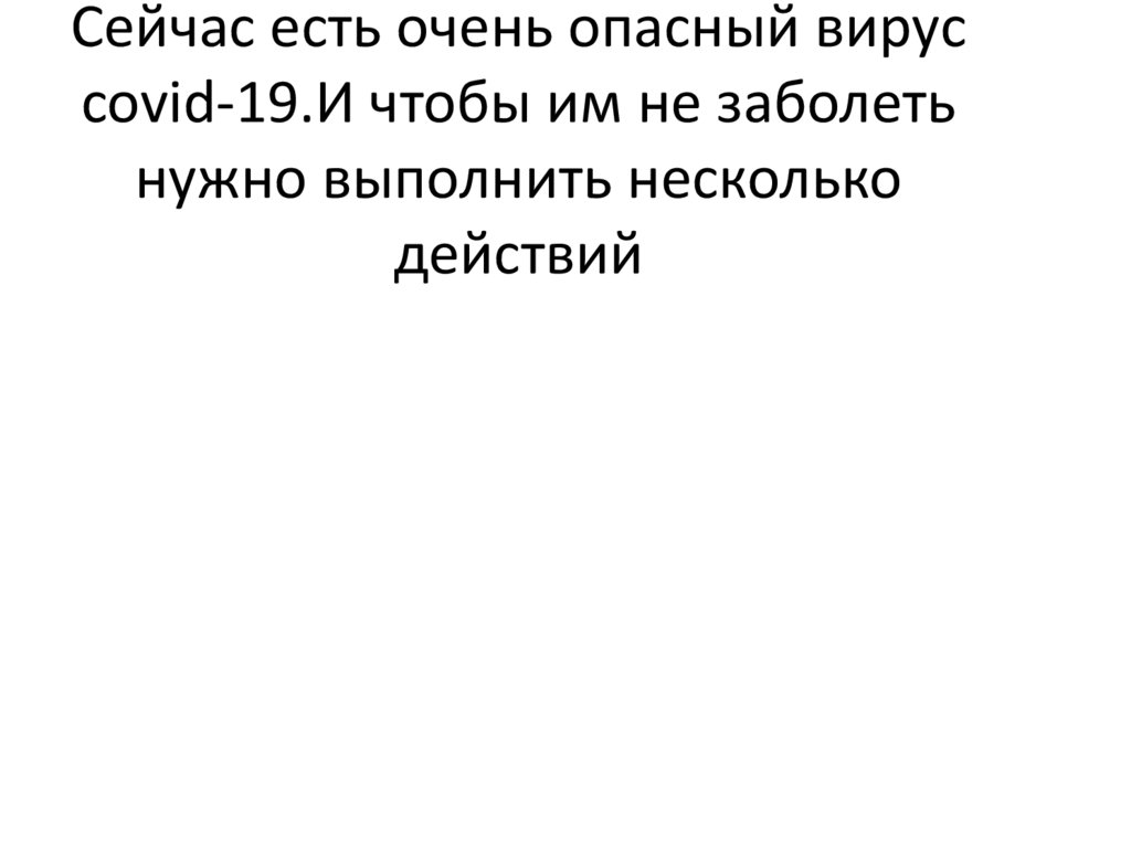 Сейчас есть очень опасный вирус covid-19.Ичтобы им не заболеть нужно выполнить