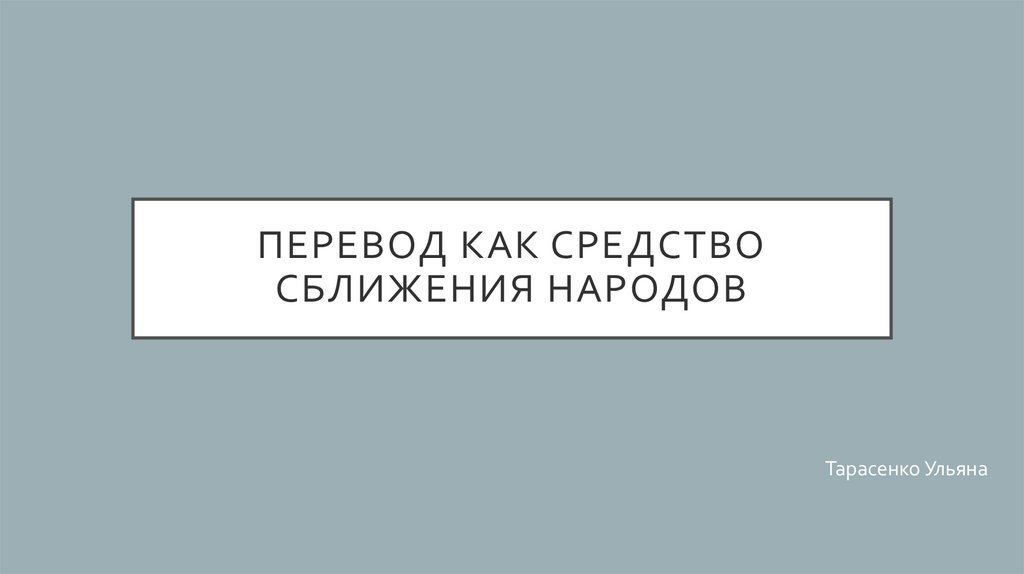 ПЕРЕВОД КАК СРЕДСТВОСБЛИЖЕНИЯ НАРОДОВ