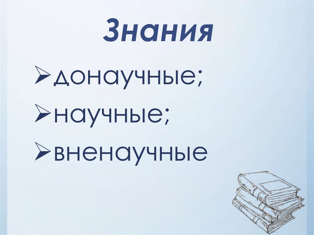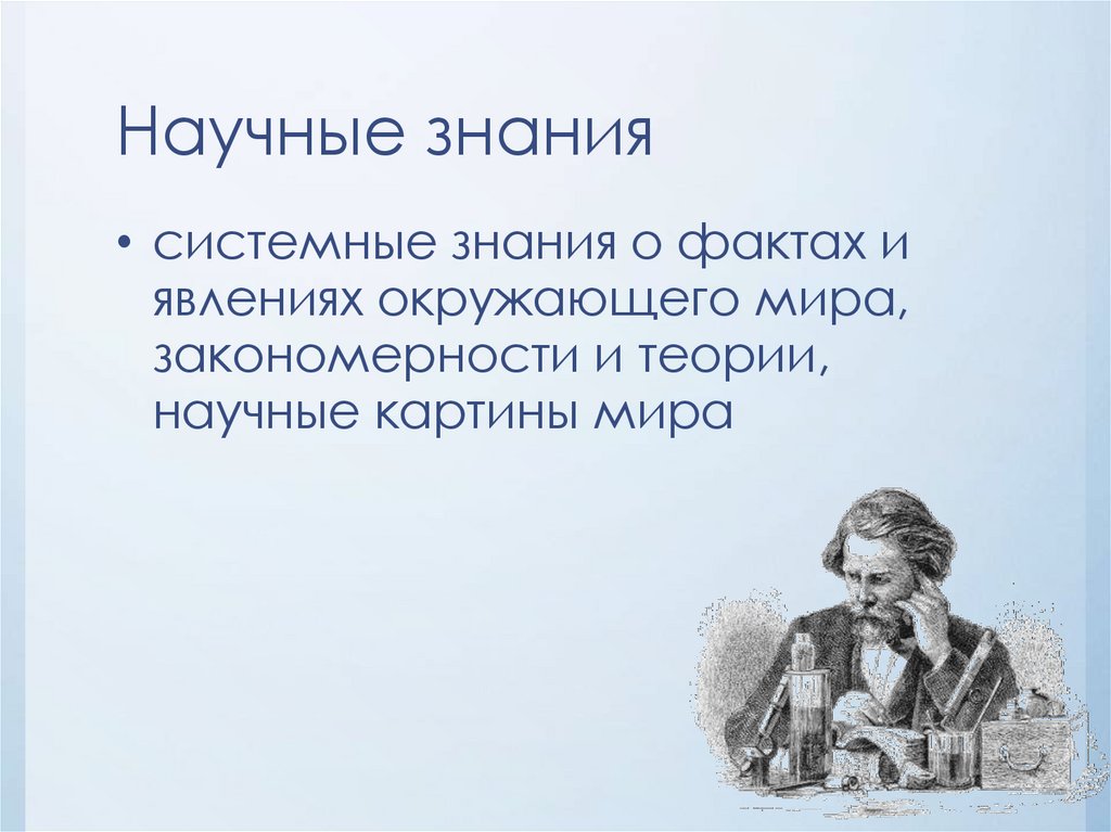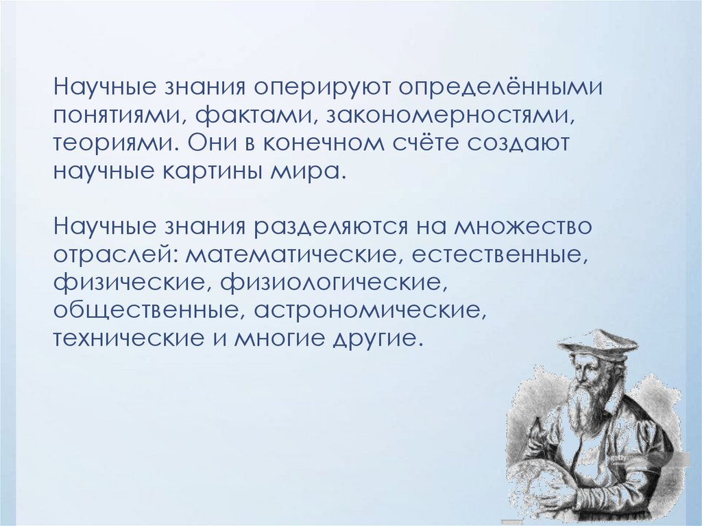 Научные знания оперируют определённымипонятиями, фактами, закономерностями,