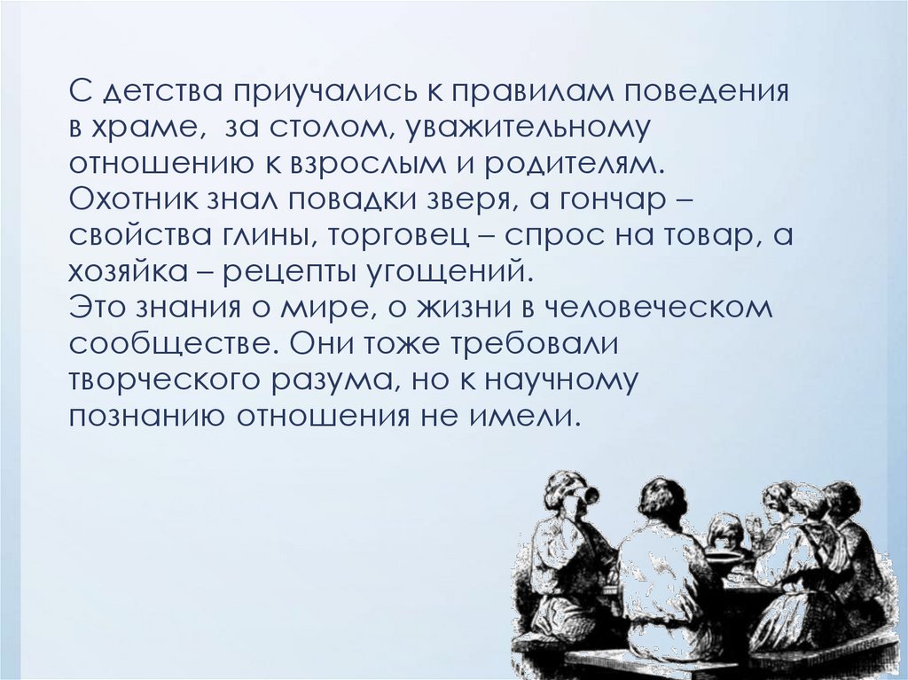 С детства приучались к правилам поведенияв храме, за столом, уважительному