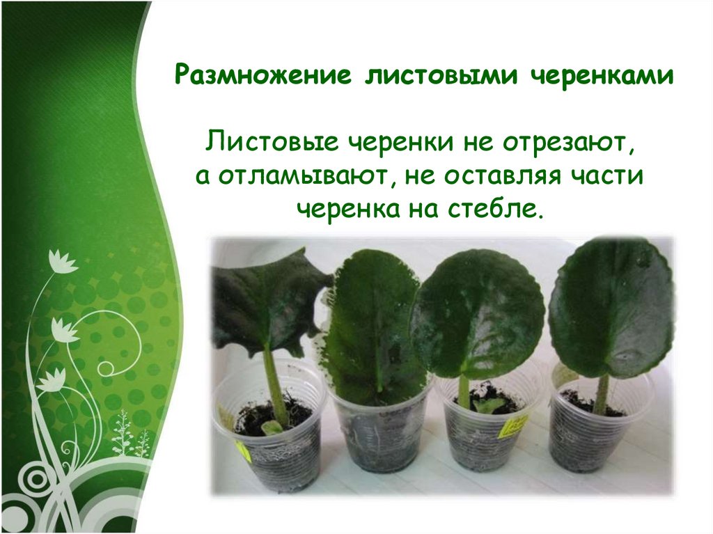 Размножение листовыми черенкамиЛистовые черенки не отрезают,