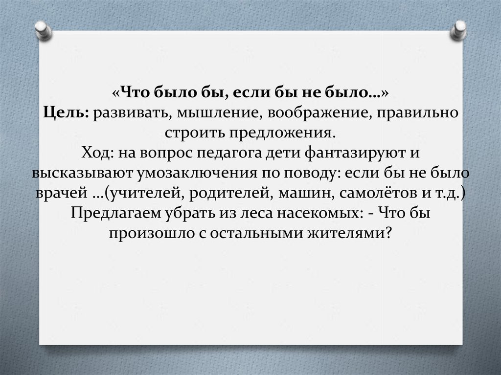«Что было бы, если бы не было…»Цель: развивать, мышление, воображение, правильно