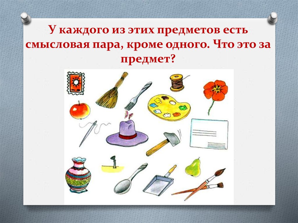 У каждого из этих предметов естьсмысловая пара, кроме одного. Что это за