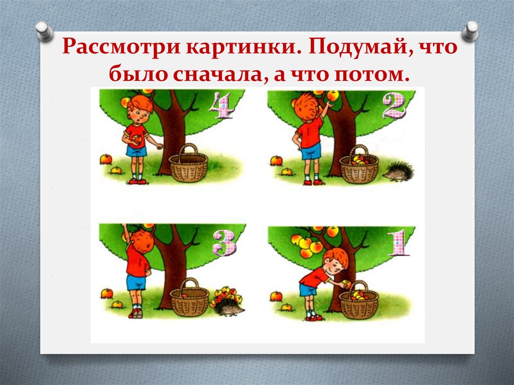 Рассмотри картинки. Подумай, чтобыло сначала, а что потом.
