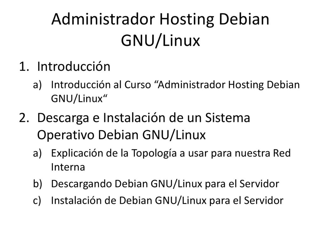 a) Introducción al Curso “Administrador Hosting Debian