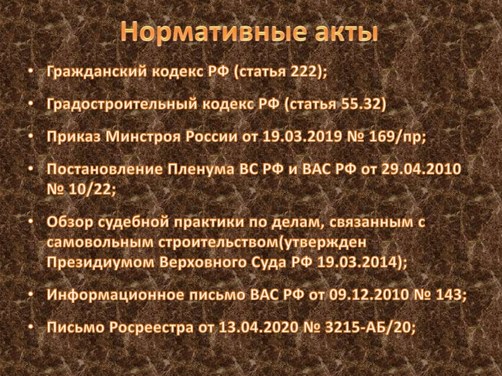 Проблемные вопросы статуса объектов самовольного строительства