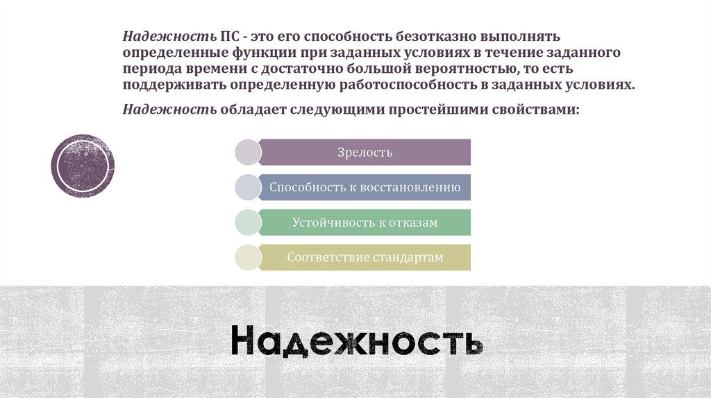 Надежность ПС - это его способность безотказно выполнятьопределенные функции при заданных условиях в течение заданного