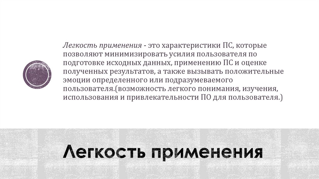 Легкость применения - это характеристики ПС, которыепозволяют минимизировать усилия пользователя по