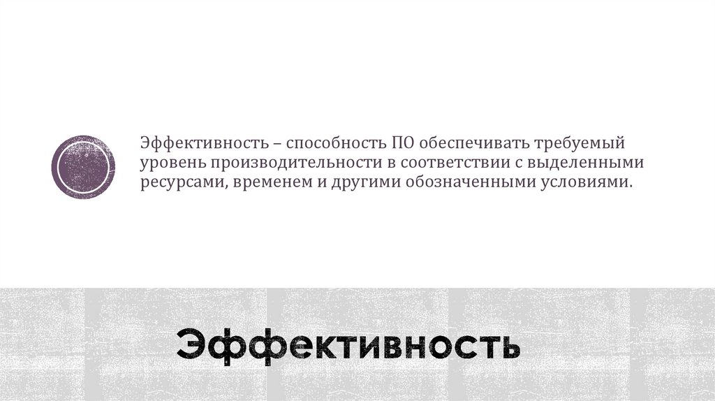Эффективность – способность ПО обеспечивать требуемыйуровень производительности в соответствии с выделенными