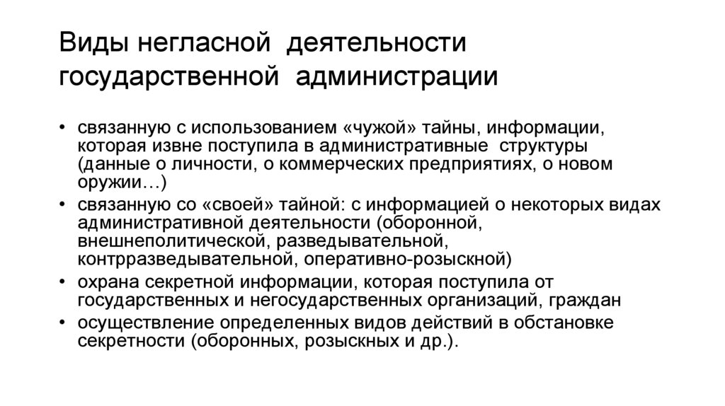 Виды негласной деятельностигосударственной администрации