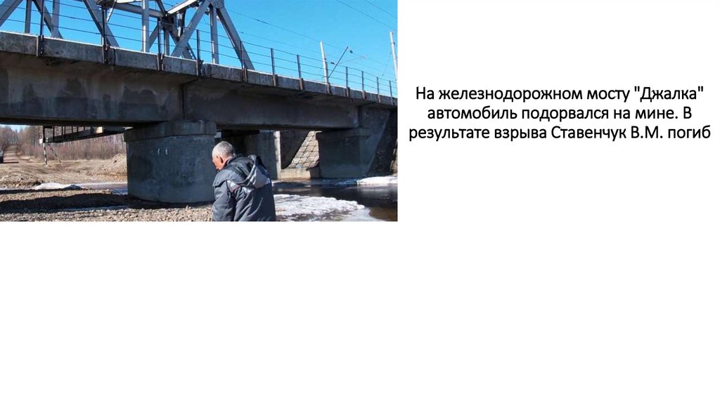 На железнодорожном мосту "Джалка"автомобиль подорвался на мине. В