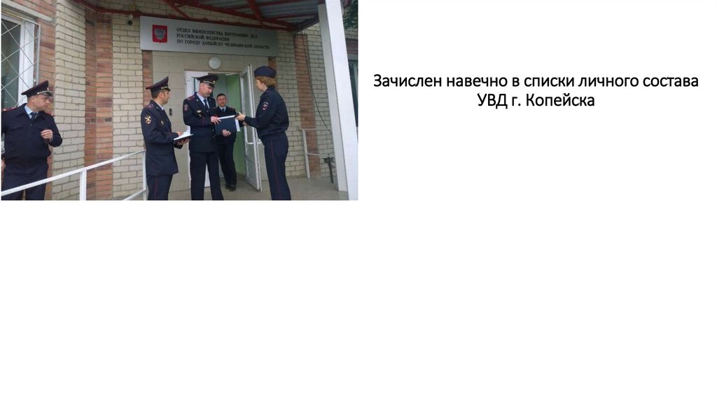 Зачислен навечно в списки личного составаУВД г. Копейска