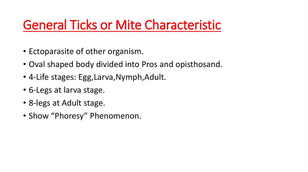 General Ticks or Mite Characteristic• Ectoparasite of other organism.