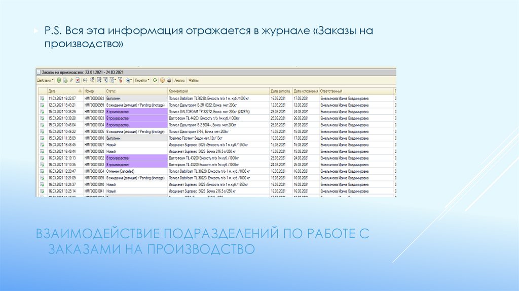 P.S. Вся эта информация отражается в журнале «Заказы напроизводство»